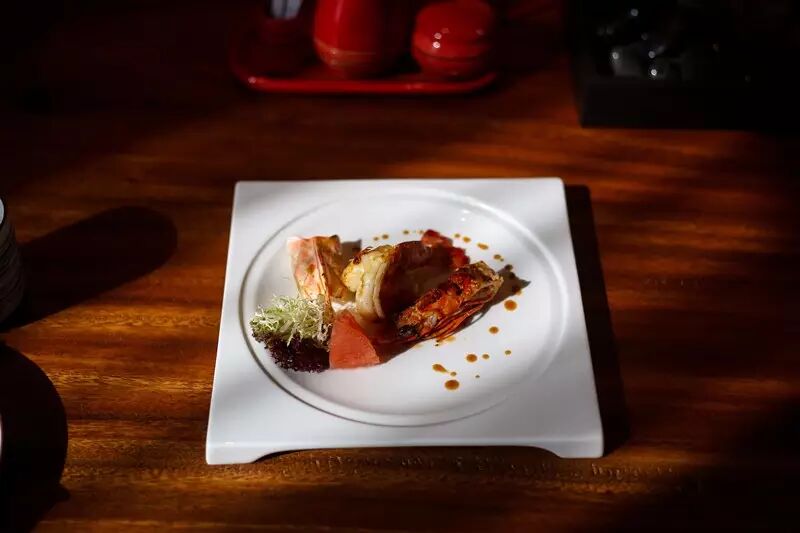 █在私人订制铁板烧料理中还配有许多传统的日本料理,包括了刺身、天妇罗等等,每一样都在水准之上。