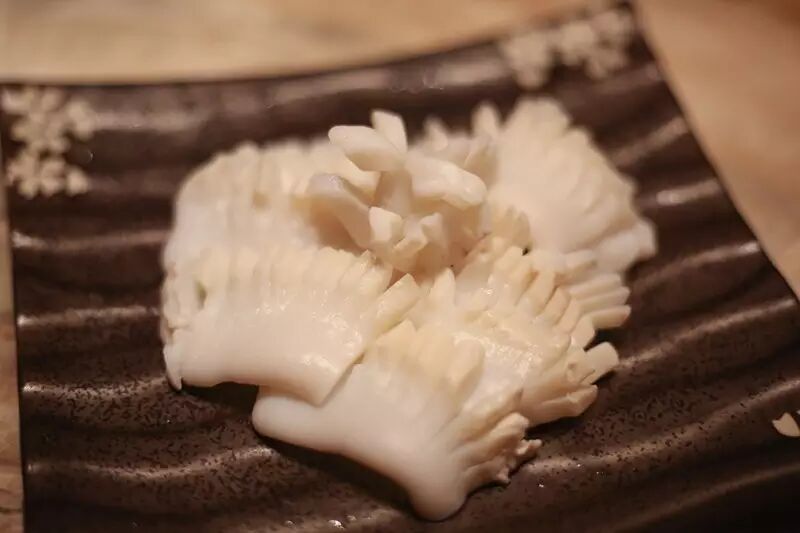█中国人说不时不食,指的是吃东西要讲究时令。而日本料理的材料和调理法也重视季节感。因此,顾师傅在铁板烧料理中会选择许多时令的食材。寒冷的冬天,冬笋和茨菇就是不能错过的美味。