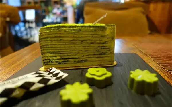 店里的一切抹茶都是主角,Breaker·抹茶园有一整片茶园,专业的研发团队保证每一款产品都能迎合你的味蕾。抹茶千层自然是亮点,每一层饼皮都是手工制成,18层,奶油细腻的口感足以见得它的优质。表面均匀的撒着抹茶粉末,完全不甜腻的一款甜品。