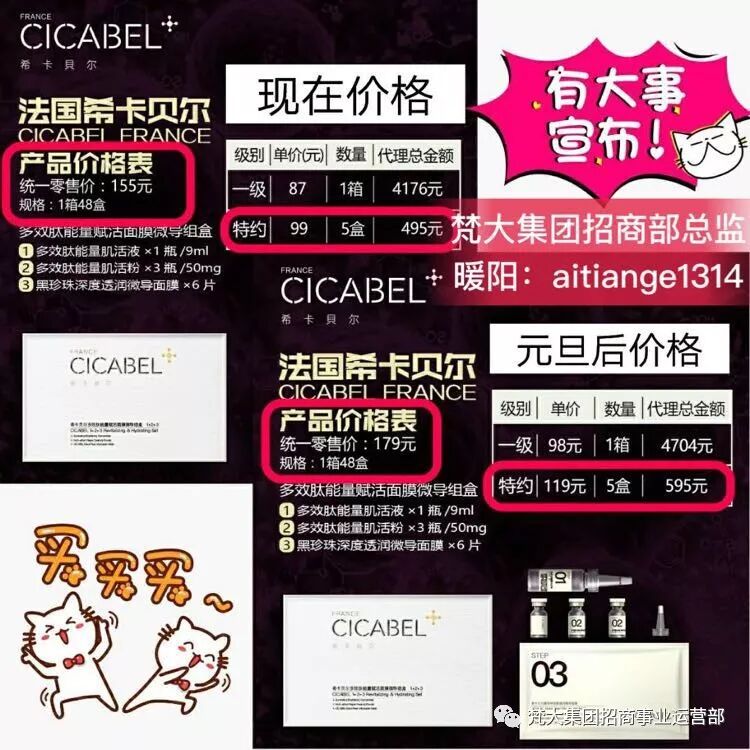 我们的希卡贝尔面膜组合,一盒零售价只要155元,可以做6次面膜护理。一次性买5盒还能享受VIP价格99一盒!5盒只要495元还能成为梵大全品代理!想一想自己平时用的普通面膜一盒也要一百多啊还没啥效果,希卡贝尔干细胞护肤这样高大上的面膜组盒5盒495就能让你的肌肤有一个大的改变!而且安全健康不刺激!敏感肌孕妇都能放心使用!还能做代理赚钱真的太棒了!2018年1月1日要涨价啦!代理也要涨20呢!详情咨询招商总监暖阳V:aitiange1314。