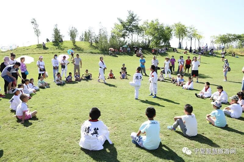 在这里不仅有盐池当地特色美食烤全羊、滩鸡、野兔、天然野菜、荞面,还可以亲自采摘各类绿色有机蔬果。晚上还有篝火晚会,歌舞互动,游览项目包括真人CS、射箭馆、足球场、拍球场是真正集生态、科普、探险、休闲、消夏避暑为一体的生态旅游休闲度假区。