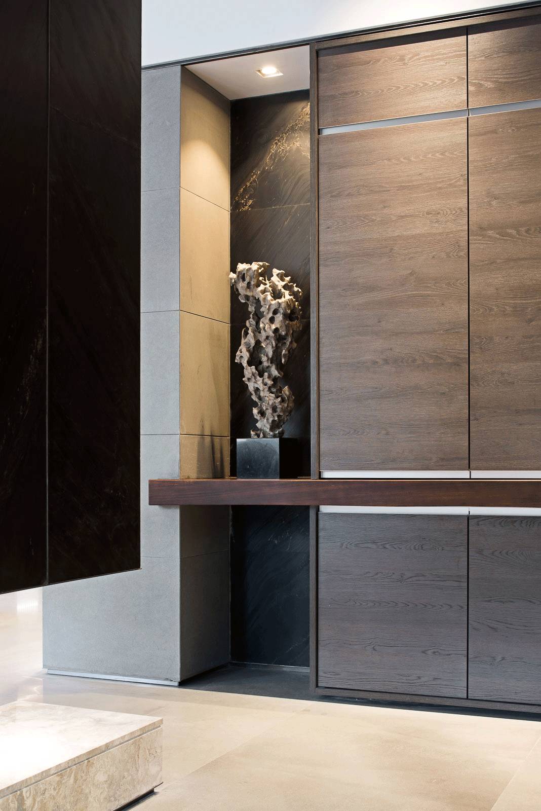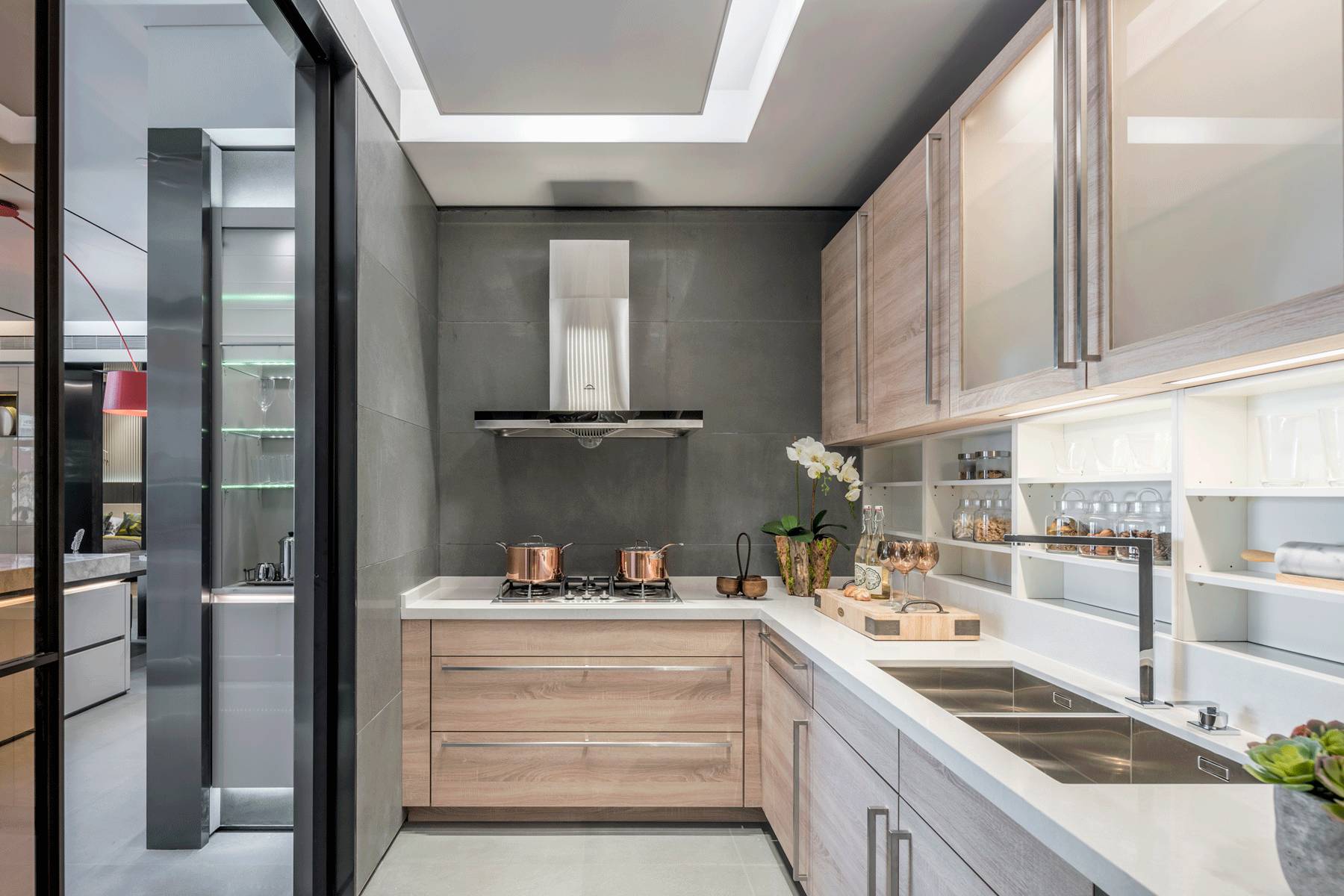 当然,生活本是平凡而琐碎的,空间形态完美呈现的背后,还需要有强大的功能设计做支撑。连自成即是如此用心的设计师,在公共区域内,大量运用了几何风格的柏丽橱柜,将储藏功能隐藏在线条背后,满足使用的实际需求。只是,柏丽进口定制板材的实施还需要靠设计师的整体精准把握和思考,在看似随意的设计背后掌握尺寸和模具化概念,如此呈现出的室内空间,才是理想规划下的个性设计,也是室内设计进入工业时代全屋装修的全球化趋势。