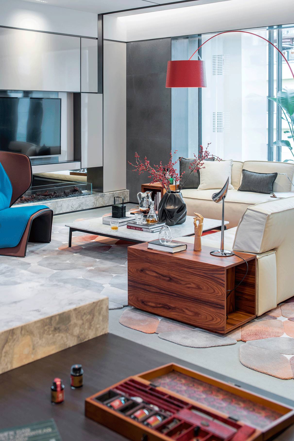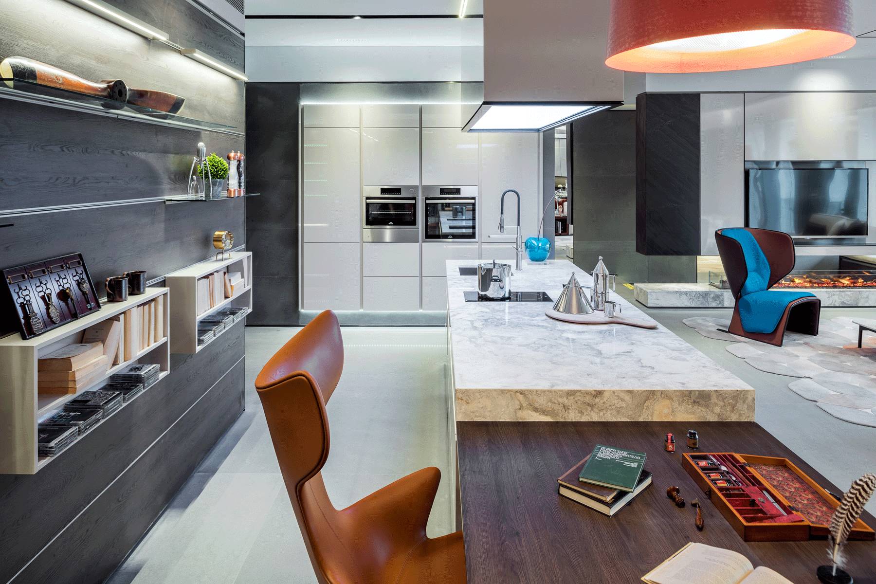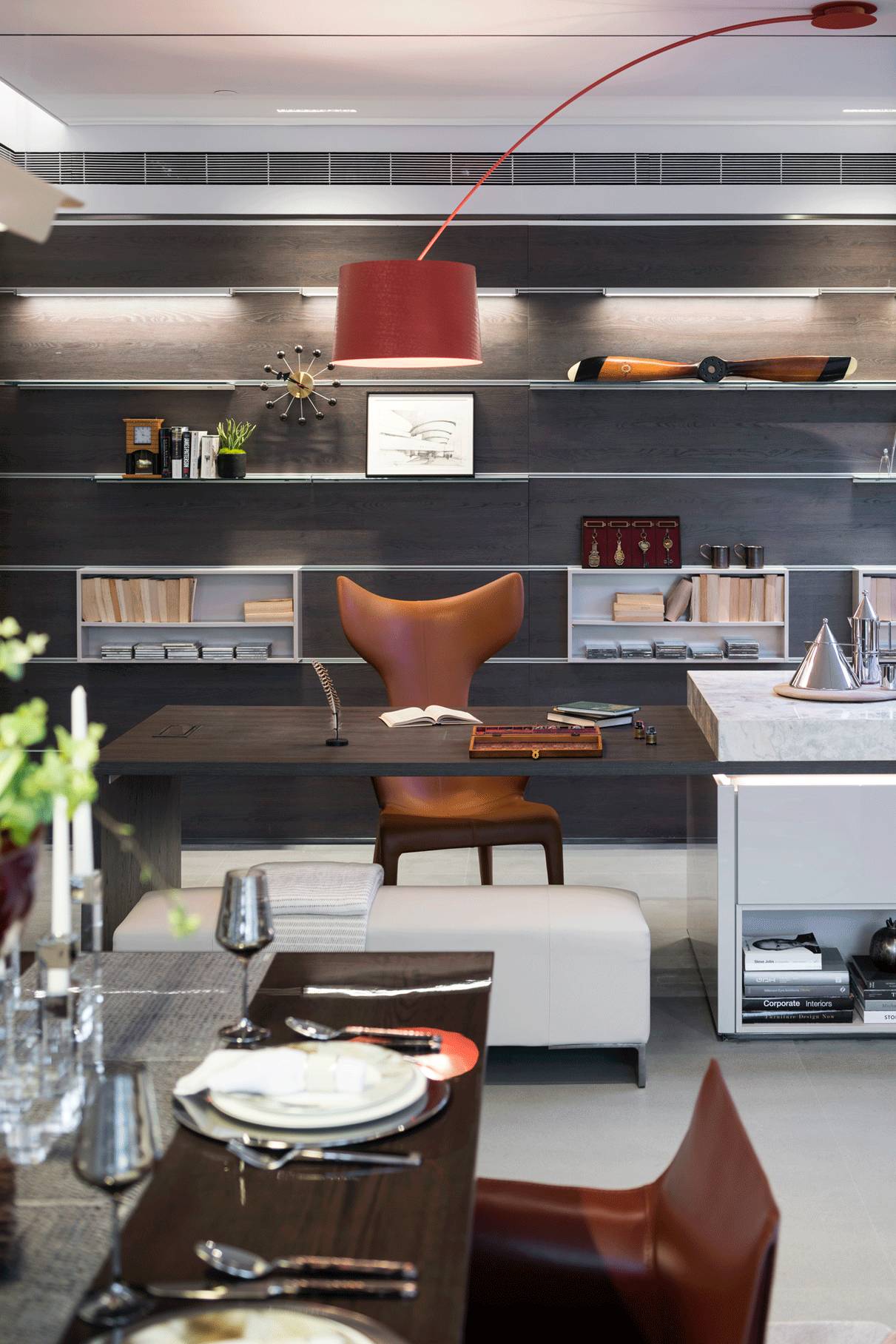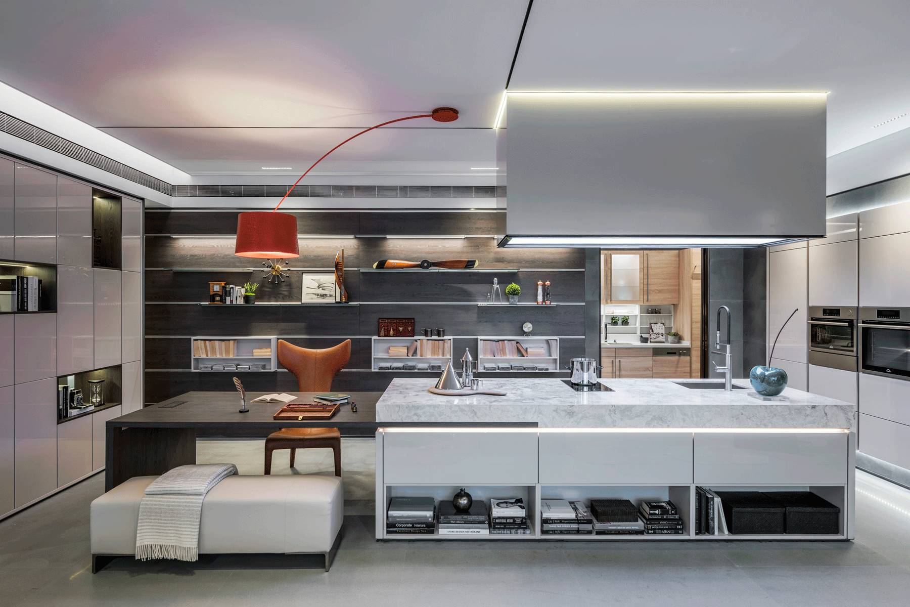 这个家位于上海宜山路德国橱柜品牌柏丽的整体家具定制中心内,突破了原有展厅以局部厨房概念展示更多产品的方式,将客厅、厨房、卧室、书房等实际生活场景融入其中,给人完整的居家体验。连自成面对这样一个设计,显得很兴奋:“很高兴能够做这个特别的设计,要在一个商业空间内创造打动人心、让人产生共鸣的居家空间,就必须做一些全新的东西,应该是一种未来的趋势或潮流的诠释,去传达一种生活方式,展现未来的生活形态。”