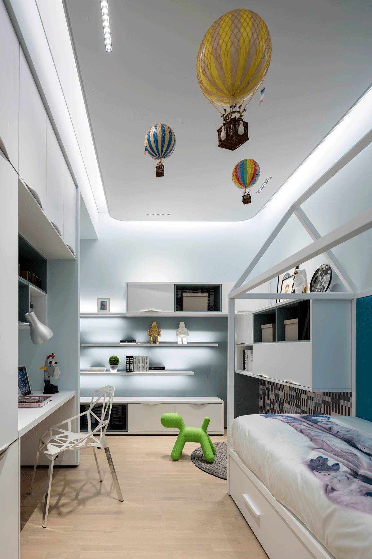 在这个理念的引领下,功能的规划布局由主人的生活行为和设计师的潜在引导所决定。在过去的空间设计中,人们强调独立性、私密性,强调个人空间,因此空间的规划也以此为中心来划分明晰的功能区。但随着电子科技的介入,设计师发现,不同功能区的划定让家庭成员变得疏离起来,沉浸在各自的小天地内却忽略了家庭成员间的沟通和交流。如何设计才能够让家变得温暖起来,增进家庭成员情感的传递,增加互动交流是连自成设计本案的主旨,也是他对于未来美好生活形态的理解。