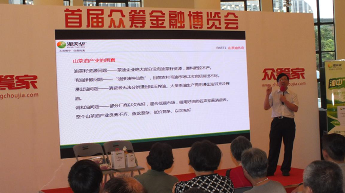 2015年6月26日在上海举行的中国首届众筹金融博览会上,联想控股企业翼龙众筹首期推出精心选择的两个众筹项目,湖南天华油茶科技股份有限公司(简称湖南天华)“认领山茶油树”的众筹项目拔得头筹,成为湖南首个登陆众筹平台的优质农产品项目。