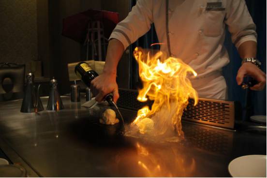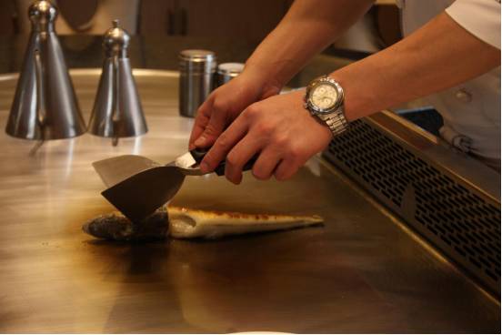 对铁板烧的厨师来说,更重要的还是“ShowTime”!厨师们技术娴熟、花俏,在宽敞的操作台旁不断为客人上演“惊险刺激”的“刀光剑影”。值得注意的是,表演的时机和长度要掌握得恰到好处,要不然可就糟蹋了铁板上的食物喽。所以最上乘的食材、绚烂的技巧与分秒计较的火候是美味厨师的必修课。