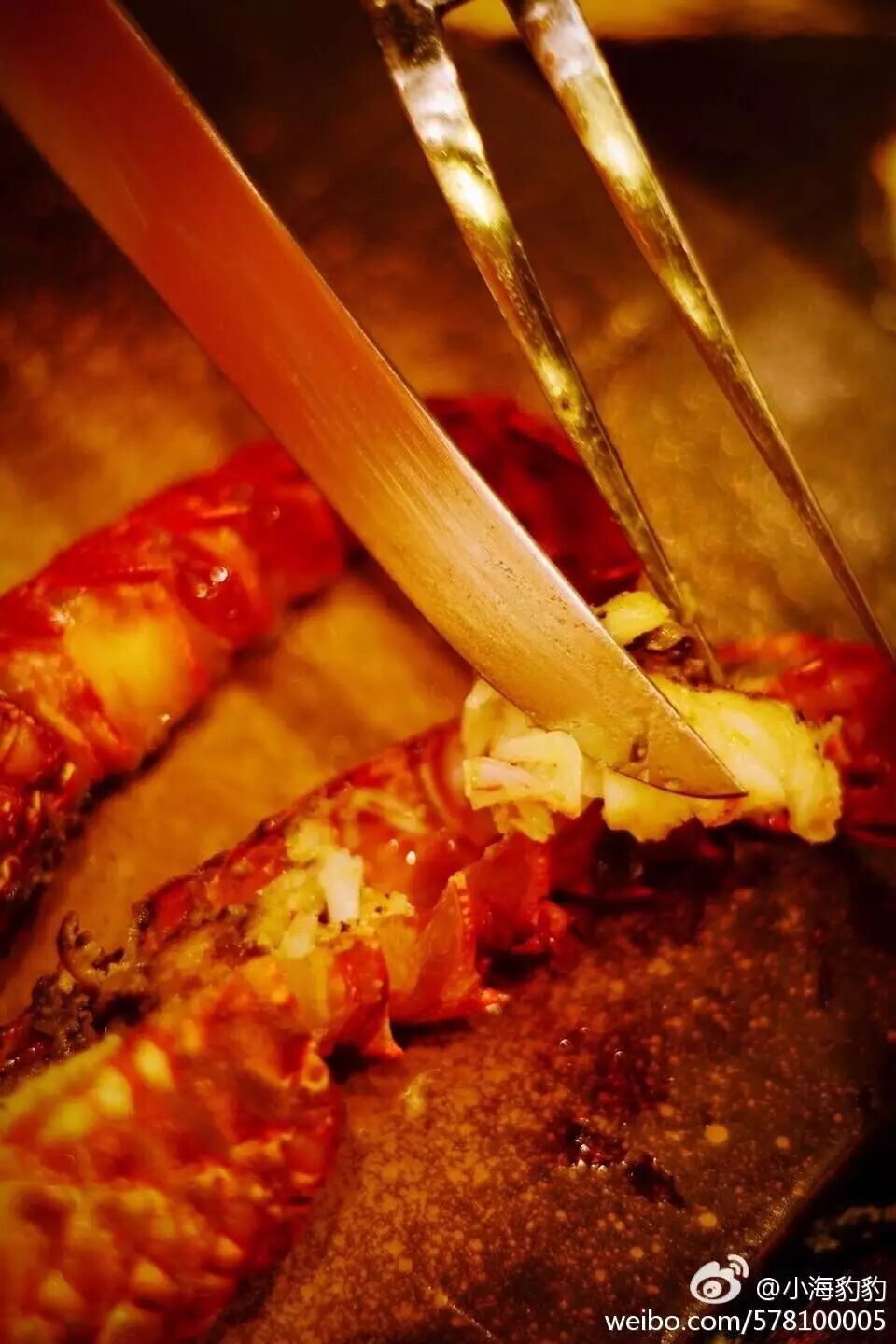 出品竟然有板有眼的,龙虾是传说中的巴龙(古巴产说是)个头比较袖珍,不过便宜啊,才128一只,还挺肥的说,铁板烧这个,厨师也很重要,手艺很不错,火候拿捏的得当。