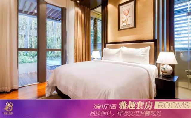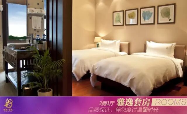 雅逸套房:150平方米,均为三房一厅,其中两间大床房,一间双床房,阳台温泉泡池,自动麻将机