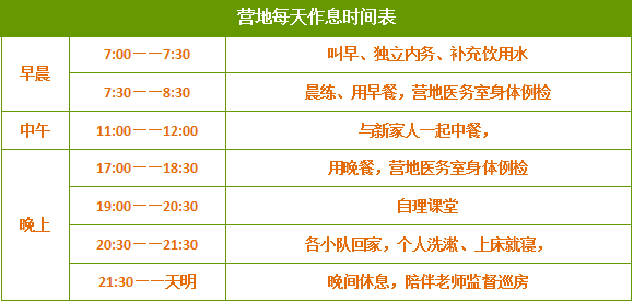 独立宣言:起床洗漱、整理房间,集结晨练;