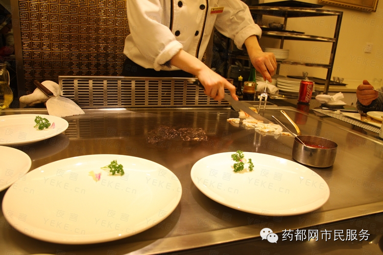 法式铁板烧在中西融合的就餐氛围中,铁板烧不是原封不动的照搬,而是创新出中国式典雅而殷勤的特色。厨师当着您的面表演“十八般武艺”焗、烤、煎、翻炒,娴熟的技巧,刀、铲飞舞轻盈。厨师在为您烹制的进程中,不时地向您介绍每道菜主辅料来历及营养结构,同时征求您对口味和生熟程度的要求,以吻合每位客人的味觉,调众口,施展出铁板烧的魅力,这是任何烹饪方式都无法比拟的。