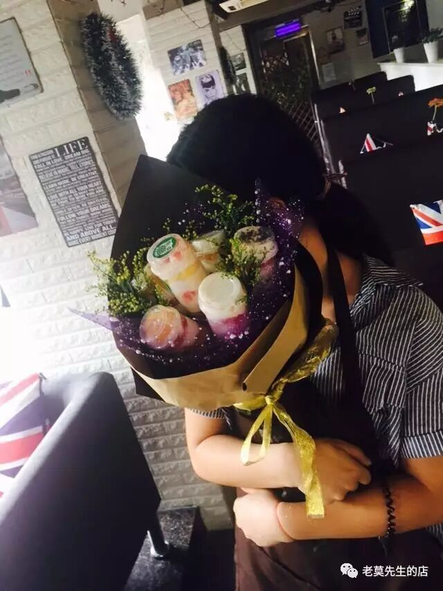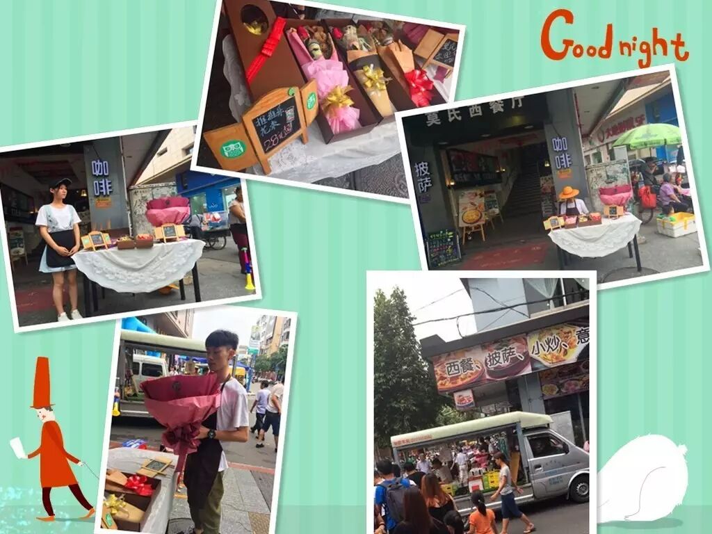 第一次在楼下卖花,心里挺忐忑的 ,到楼下吆喝,想不到挺多小伙伴支持的,大家老莫前老莫后的,这感觉,滋滋的~~遇到了几个很可爱的小美女,一直在看着最大的那捧花束在拍照。我索性跟她说:“来,拿着,送给你拍照!”。看见她们一开始的懵懂,惊讶,到了后来拿着花束那灿烂的笑容。那一瞬间觉得,在这件事情上,我做对了。以后,要继续学会分享,不要吝啬。