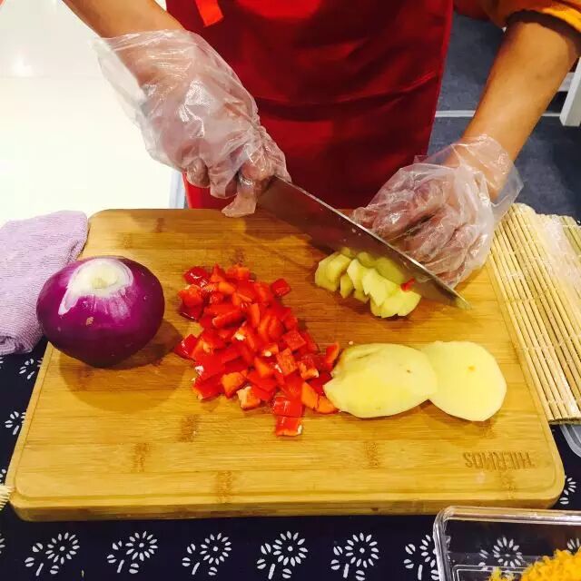 大厨在准备做咖喱洋芋鸡的配料啦~