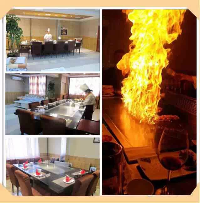 火当您坐在铁板烧的吧台前,您将感受到的是一场室内的篝火晚会。火苗噌的烧起来,高高的,您可别怕!美味即将登场,等待您的品尝,三五好友小聚,这里是你的不二选择!英尚全体员工欢迎您的光临!