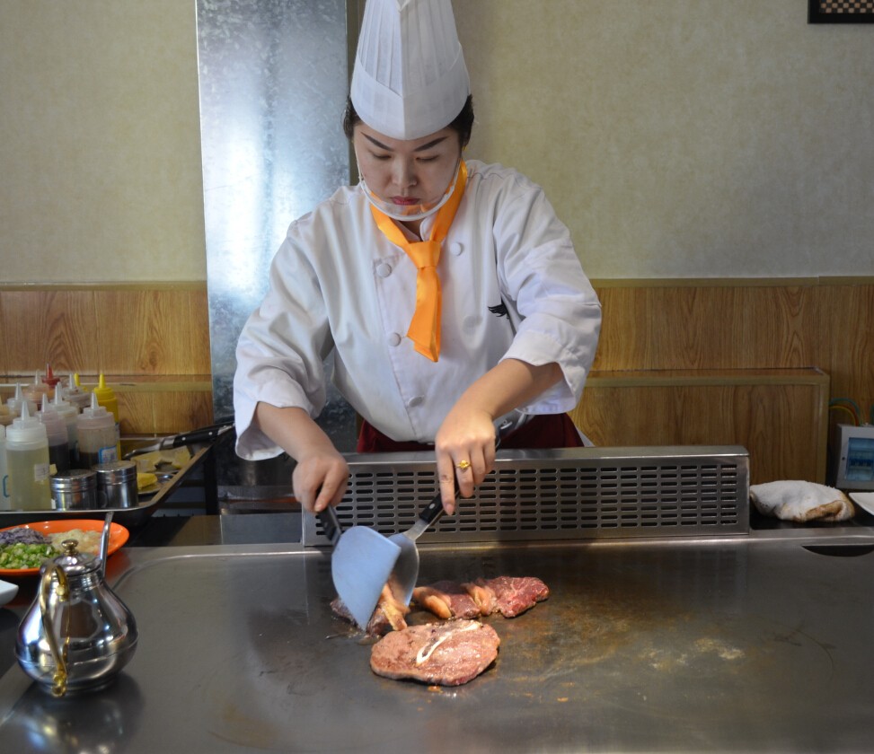 看师傅为您认真的煎好每一块牛排,那都是用心去煎的。