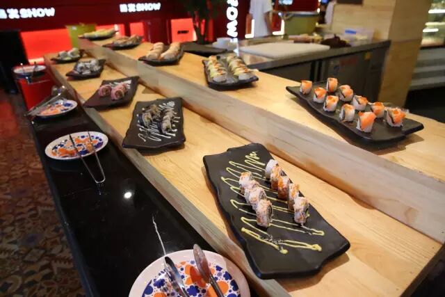 这里的生鱼片,大厨边切你边拿,这里的寿司,大厨边捏你边拿,可以的,这很自助,妈妈再也不用担心你吃日料吃到破产啦!(说好的每样不能吃太多呢?)