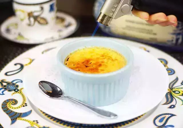 切成小肉方块的肩甲肉,煎起来令味道更深一层,嫩滑的牛肉和Q弹的口感相当过瘾。也就是我们常吃的牛小排,一头牛只能分割出5-6份,脂肪分布均匀,就像大理石一样。香煎时会均匀渗透进牛肉里面。一口下去,油油嫩嫩的肉丝中夹着Q弹有劲的油筋,油脂在口中放烟花,和着蒜一起吃更有风味。还可以点一些蔬菜平衡一下膳食,不够饱建议来一份炒饭,几个人分一下饱饱肚子足够了。法式的浪漫,总是用甜蜜收尾。经过火与糖的“焰遇”,一道经典的法式甜品“火炙焦糖布丁”就完成了。除了各种铁板上的美食,还有刺身、寿司、下酒小菜等等,喜欢吃鱼生的顺德朋友不妨试试,外卖还有85折,挺划算的哦。