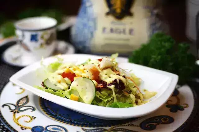 除了蔬果类型多于一般的沙拉,里面还加入了法国长面包和特制的香蜜芥末酱,嘎嘣脆的口感,味道比普通的沙拉更清新。