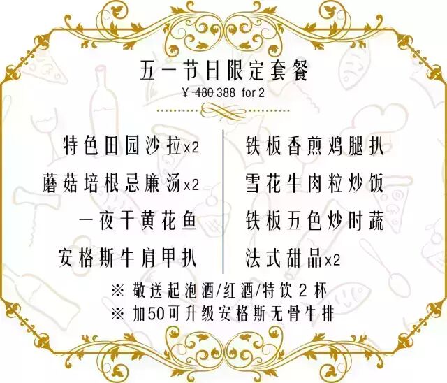 7天最低4折!开在五星级的家的法式铁板烧餐厅,五·一还有免单活动哦!