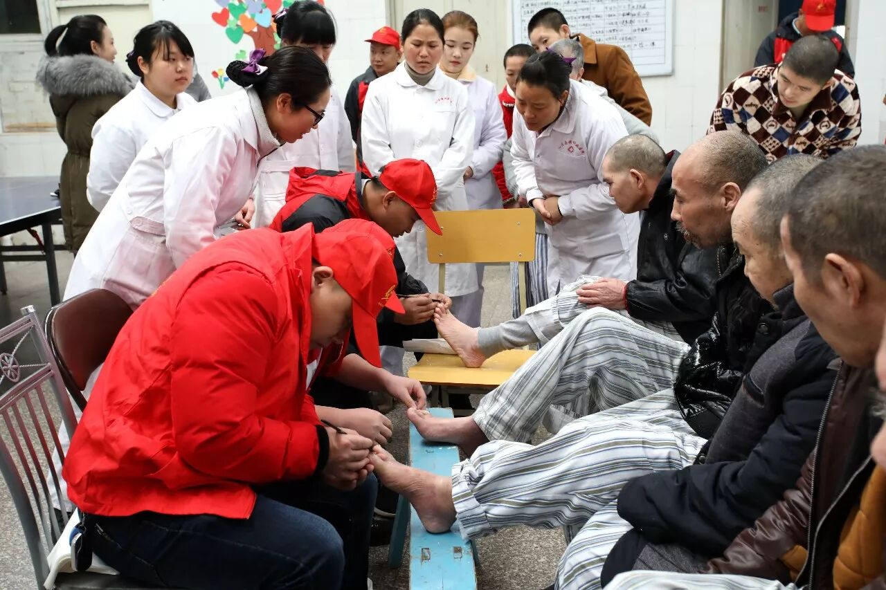 【图片新闻】日前,30多位义工志愿者到县精神病医院开展关爱“三无”患者活动。活动中,志愿者们为这里67位叫不出名字、无家属、说不清哪里人的“三无”患者,送去棉被、鞋袜、零食等物品,带去理发、修剪趾甲等服务,并为他们准备了爱心午餐,让他们感受到冬天里的温暖。(王华斌 吴美丽)