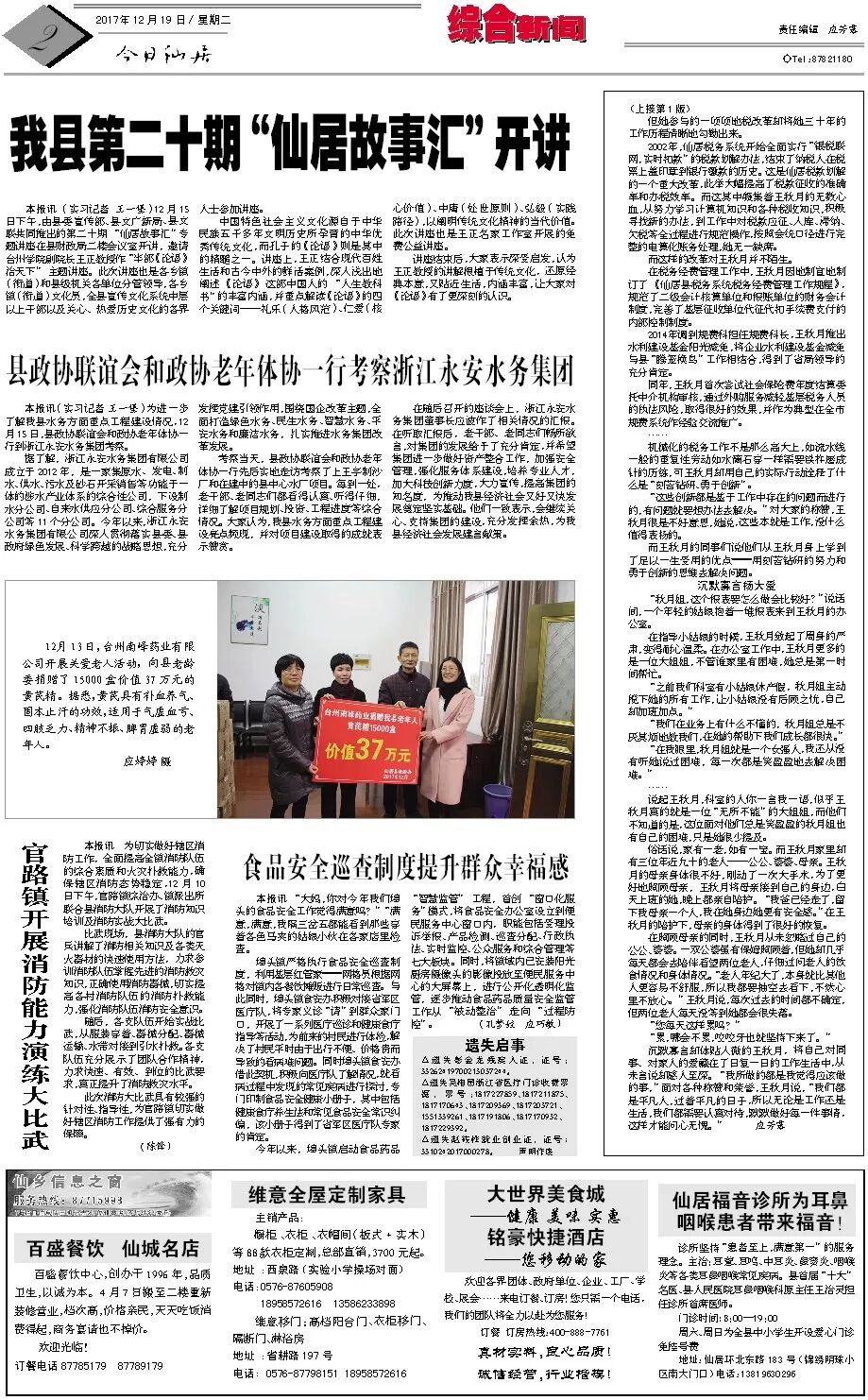12月18日,台州日报头版以《探索村级集体经济十种发展路径 ——看仙居经济薄弱村的“美丽蜕变”》为题,报道我县集体经济薄弱村转化的经验做法。