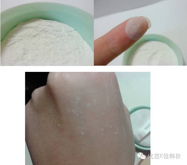 粉质细腻均匀,含有薄荷成分,味道也是薄荷的清淡味,适合各种肌肤,尤其是油性皮肤,因为控油效果绝佳,能够缓解夏日流汗造成的脱妆,定妆比较持久~油性皮肤妹子的大爱^O^