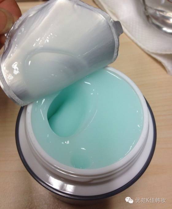 可以看到里面淡蓝色的面膜哦。是乳霜样子的,散发着清新的香气,很小清新呢~