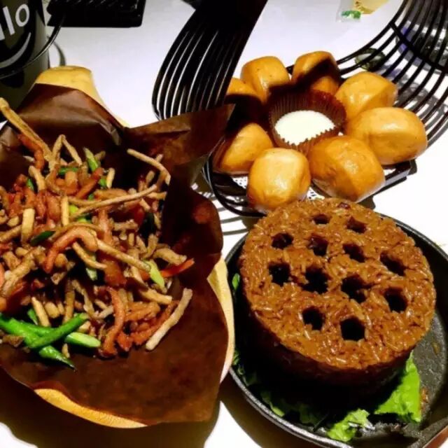 超级有特色的鸟笼餐桌餐厅,灯光是紫色的夜店风格,适合年轻人,来到这里既可以满足环境的需要,又可以满足时下流行的环保理念,还有什么比用手抓吃东西更淋漓畅快更满足的呢~