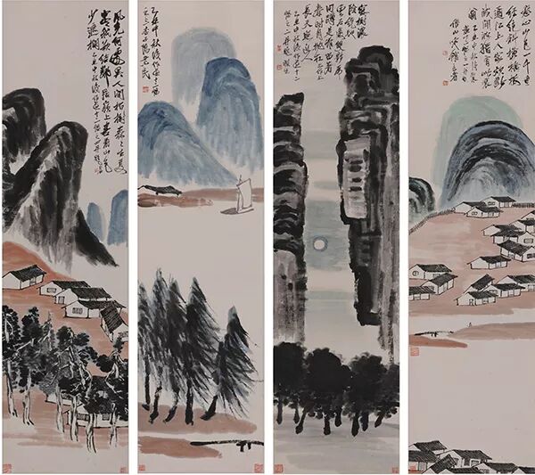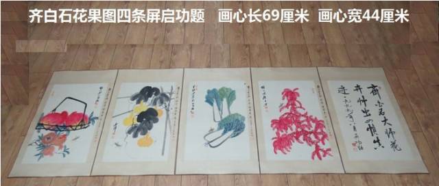 白石老人平生写画无数,却鲜作四屏。欲得四屏者,必须搜集题材、尺幅、年份及水准相若者方可成套。