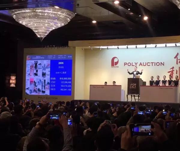 《山水十二条屏》当晚以4.5亿元起拍,随后,场内先后有收藏家报出4.5亿元,并以一千万元的价格上升,过5亿元后则直接以2000万加价,在七十次左右的让人焦灼心跳的竞争中,最终是以8.1亿元落槌,加佣金以9.315亿元成交,这一成绩也使这一作品成为全球最贵中国艺术品。
