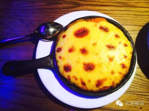 一代闷骚南瓜,弄堂里自研发的新菜品之一,南瓜饼上面附一层芝士焗烤出来,南瓜口感很软,果肉细腻,配合奶油和芝士的甜,体验很美好