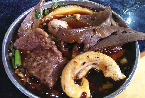 卤猪蹄原来也可以煮在火锅里,烫过之后味道实在太棒了!牛肝也超级有特色~~
