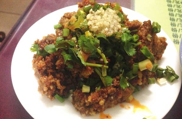 凉拌鸡鸡肉干香不柴,一块入口显示感受到软糯的鸡皮,然后是鲜嫩Q弹的鸡肉,配上秘制的酱料,想了一块又一块。豆芽圆子汤真心好吃,圆子是酱油圆子,用豆芽打底,番茄调味,汤特别鲜。