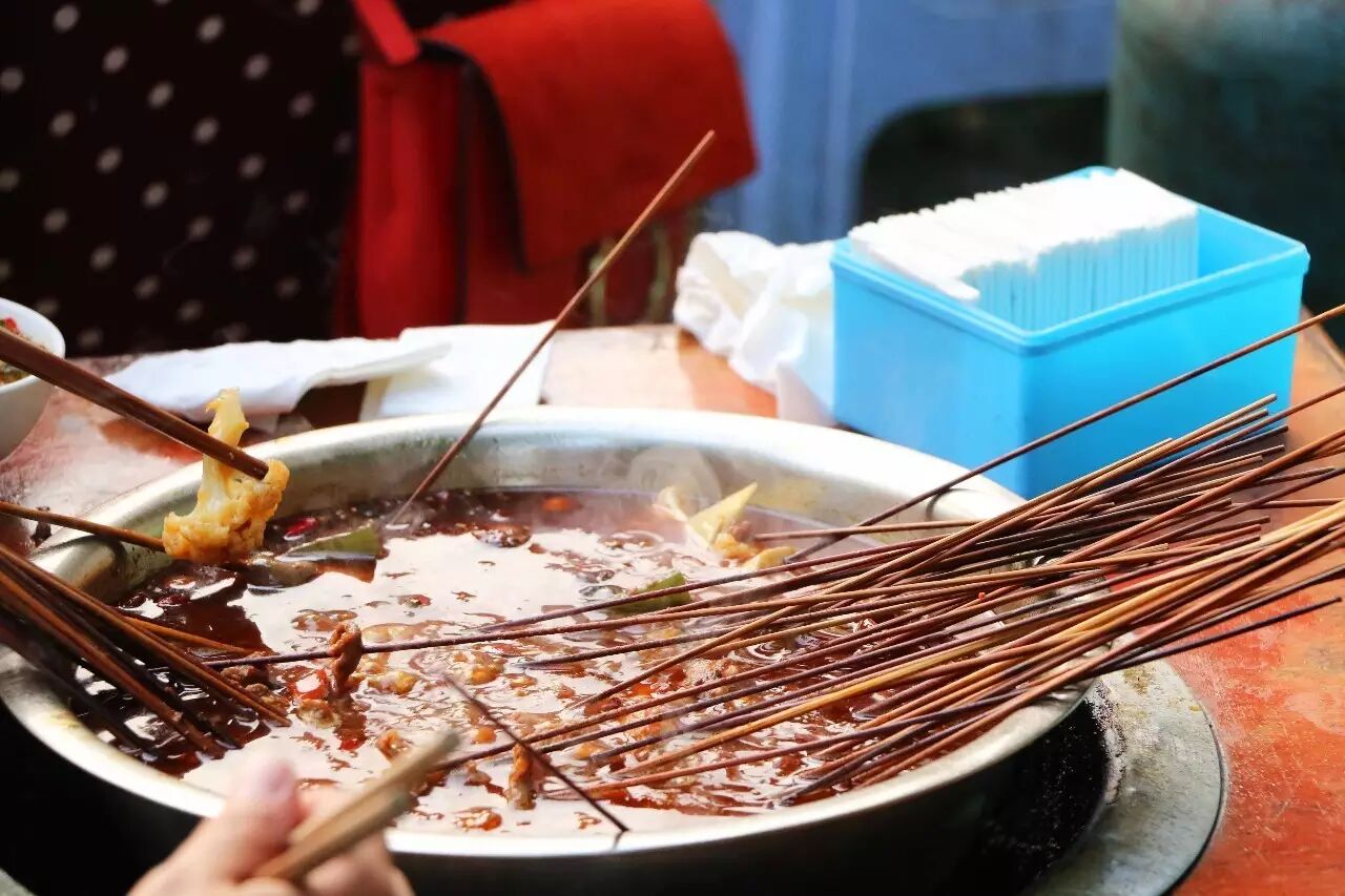 铺面直接开在居民区口子上,看招牌就晓得年头有好久了,坐在这种巷子里吃串串也是多有情调的。