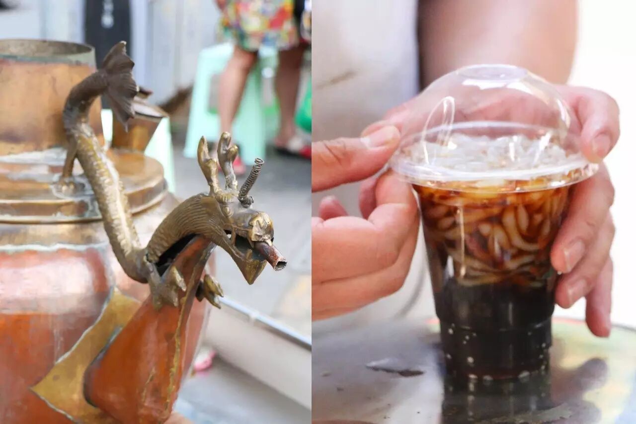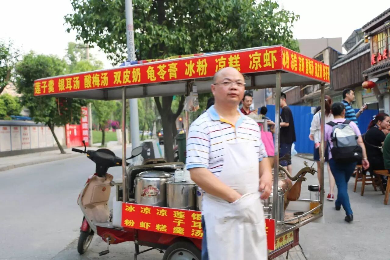 ▶▶这个流动的摊子就固定在食坊居门口做生意,冬天卖莲子羹、春夏卖冰品~