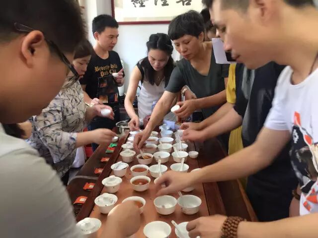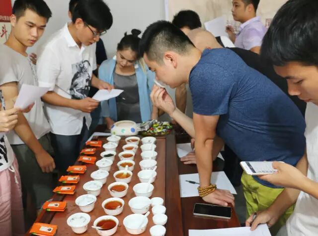 汕头赛区活动现场评审届专家们的交流互动,在武夷茶品鉴和品质把关上做进一步的交流。