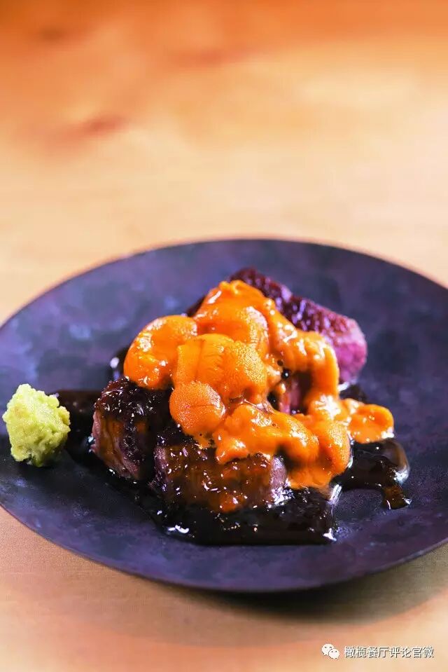 这里的熟成肉套餐会包括约3款不同部位的黑毛和牛熟成肉,虽然同样以铁板煎熟,但肉质及风味却各有不同,我们这次有机会试到稀有的牛pat pat“Ichibo”、配岩盐干昆布丝的后腿肉,以及加了北海道海胆的牛柳,比起一般的赤身肉质更富弹性及有嚼劲,肉汁更浓更香,并且丝毫没有油腻的感觉,好吃到停不下来!