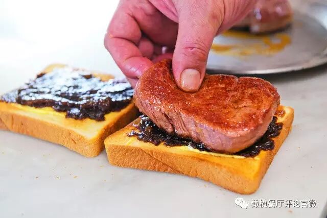 如果觉得光是吉列牛扒不够话题性的话,这份非一般的“厚多士”应该够份量吧!每份用上超过100克的A4级黑毛和牛牛柳,从切肉、上粉炸、煮汁到烘多士,师傅全部都是客人点单后才开始制作,所以特别美味!虽然是赤身肉,但炸之前师傅用刀略微剁松,所以咬起来特别松软。而最惊喜的是那层秘制酱汁,原来用上不同水果加大量洋葱煮成,那层厚厚的洋葱酱味道又香又浓,又因为用上大量水果制成,味道带点果香,酸酸甜甜味,搭配厚切炸牛扒也不会觉得油腻,令和牛三文治更出色!