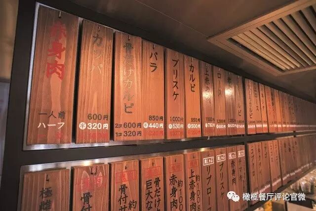 虽然是烧肉店,但万野的装修风格却像寿司店更多一点。除了设有开放式厨房,墙上还挂着当天所供应肉类的木牌,每一款都根据不同的分量标明价格,分为一人份、半份、一块三种,非常贴心。店内还设有吧台位,就算一个人吃都不会觉得尴尬。另外,这家店的烧肉烤炉则藏在台面下,油烟较少,吃完出来也不会觉得浑身都是一股烧肉味,所以很受女性食客欢迎。