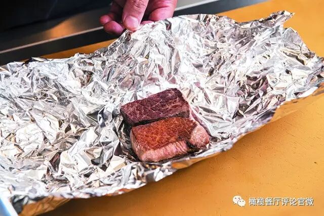 以足够体现美味的厚切方式呈现,但不是长时间放在铁板上烧,而是烧一会儿后熄火,用锡纸包裹住,以余温慢慢煨熟,如此反复4、5次,使肉质柔软又美味。