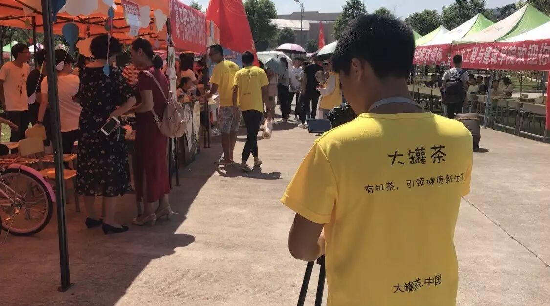 活动现场我们模块区分、多点开花。作为大学生创业活动的一部分,大罐茶提供了公益性的免费茶水,在炎炎夏日为新生和家长送上一杯清爽的茶水。关注大学生健康成长同时,向社会献爱心,做公益,也一直都是大罐茶的初心所在。