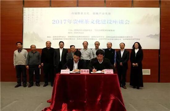 会上,贵州省茶文化研究会与贵茶杂志社签订了战略合作协议,双方将在贵州茶文化建设工作中紧密合作,共同促进贵州茶文化的传播和提升。此外,胡继承在会上宣读了贵州茶文化建设倡议书,以下是倡议书全文: