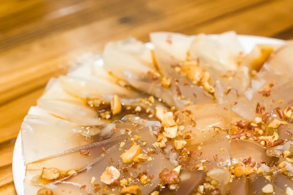 说到皮冻,其实原来它是用猪皮和盐酥花生这两种主要食材做成的,偏凉凉的口感很适合夏季食用。