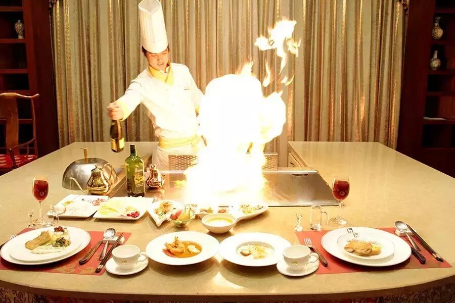 在中西融合的就餐氛围中,铁板烧不是原封不动的照搬,而是“洋为中用”。在客人面前,厨师如同其中的一员,先展示其原料的新鲜度,客人认可后,方可开烹。当着您的面表演“十八般武艺”焗、烤、煎、翻炒,娴熟的技巧,刀、铲飞舞轻盈。