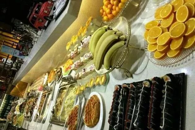 网友点评:店面很大,店内陈列布置井井有条,店里的菜品、肉类、水果一应俱全,品种花样繁多,尤其是熟食和点心的花样比其他自助餐店的要多很多,非常喜欢他家的五花肉,,一点儿都不肥,涮锅菜也很多,经济实惠。