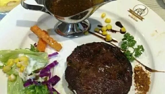 网友点评:招牌很醒目餐厅的档次也具有一定的规模,进去就餐感觉比较舒服,环境优雅清新。总的来说菜品的口味还不错,热菜区、沙拉区、水果区、糕点区、零食区、饮料区,每个区有六样可自取。点一份牛排可以免费用自助餐,最便宜的79一份。