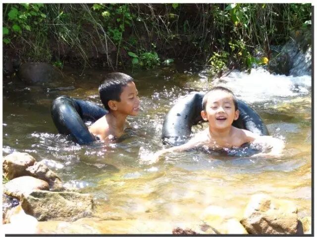 吃完冰砖还可以和小伙伴一起去小河里游泳。河水清清凉凉,干干净净,还可以在河里摸鱼、摸螺蛳。