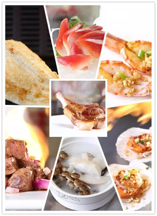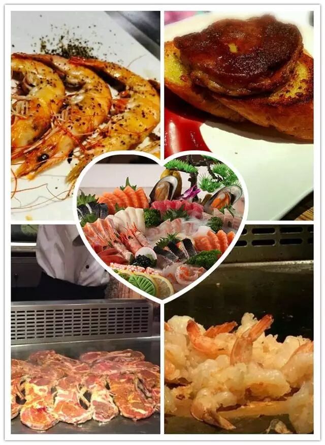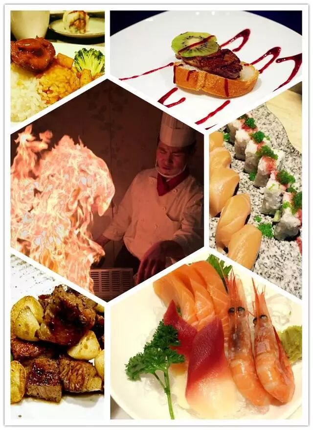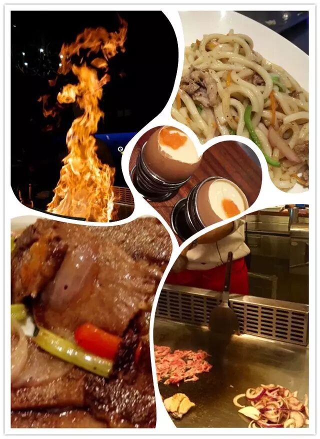 三文鱼与甜虾刺身不错,新鲜肥厚。铁板青口贝很新鲜(连壳的),开背虾个大,火焰牛排汁多肉嫩;烤扇贝,肉大肥厚;开背虾和黑虎虾,肉质紧嫩;铁板冰激凌是用罐头菠萝点底的,使之融化的速度变慢了一些,厨师们也算是用心研究了,铁板蔬菜看其他食客点了,内容挺丰盛,但真没肚子了。最喜欢的是他家的鲜榨果汁,三种,真是水果的,饮料没喝别的,就它了!