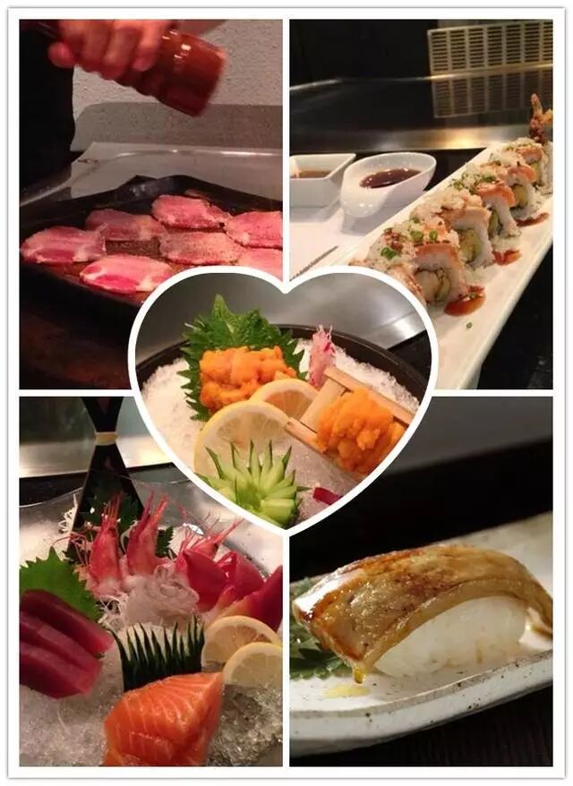 鱼生拼盘,有三文鱼,北极贝,金枪鱼,甜虾刺身组成。深海鳕鱼,鳕鱼块很大,经过厨师的料理金黄诱人的呈现在餐盘中。外皮酥脆,肉质细嫩。红酒牛舌,牛舌是事先处理好后冷藏的,感觉像之前酱制过的。锦堂松板牛排,这个是大力推荐的,好吃好吃好吃的!配搭店家独家的玫瑰盐和黑胡椒颗粒,牛排感觉更香了。香茅草猪颈肉,这个是其他家铁板烧没有的。猪颈肉被喻为猪身上的黄金6两,经过特殊的东南亚香料腌制用铁板烧的形式还是第一次品尝。猪肉的腥臊味完全没有,肉质嫩滑,外焦里嫩完全颠覆了猪肉难吃的印象。