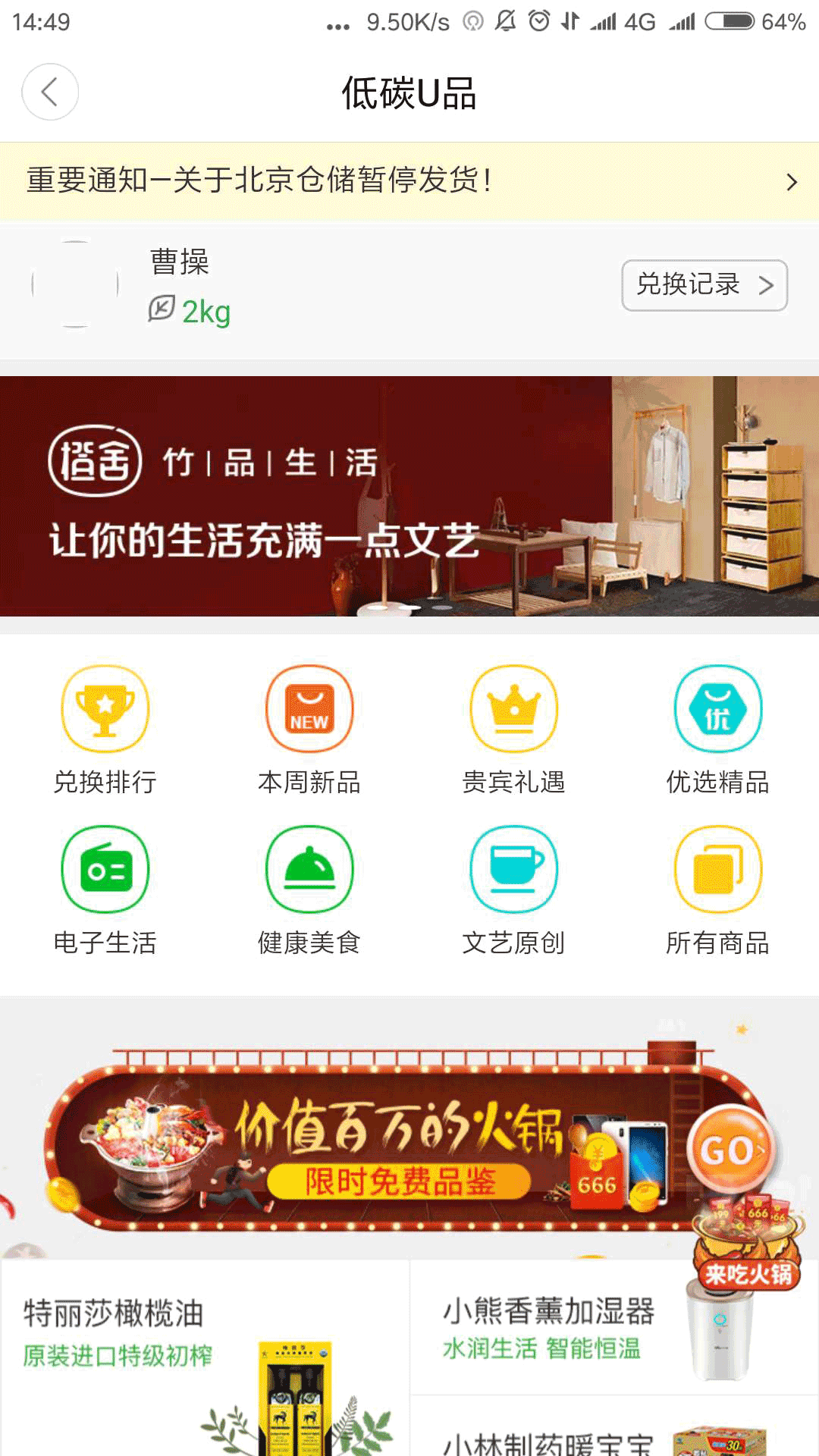 进入APP — 点击右下角低碳U品 — 贵宾礼遇 — 兑换 — 填写地址 — 马上兑换