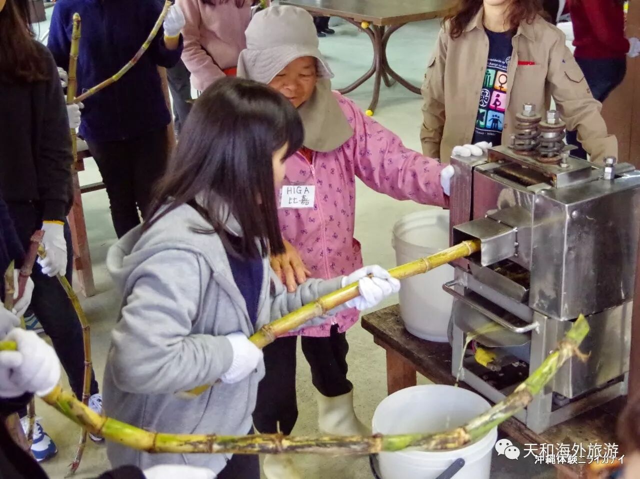 在本地欧巴桑的指导下榨甘蔗汁熬琉球黑糖 屋子里充满了甜蜜的空气